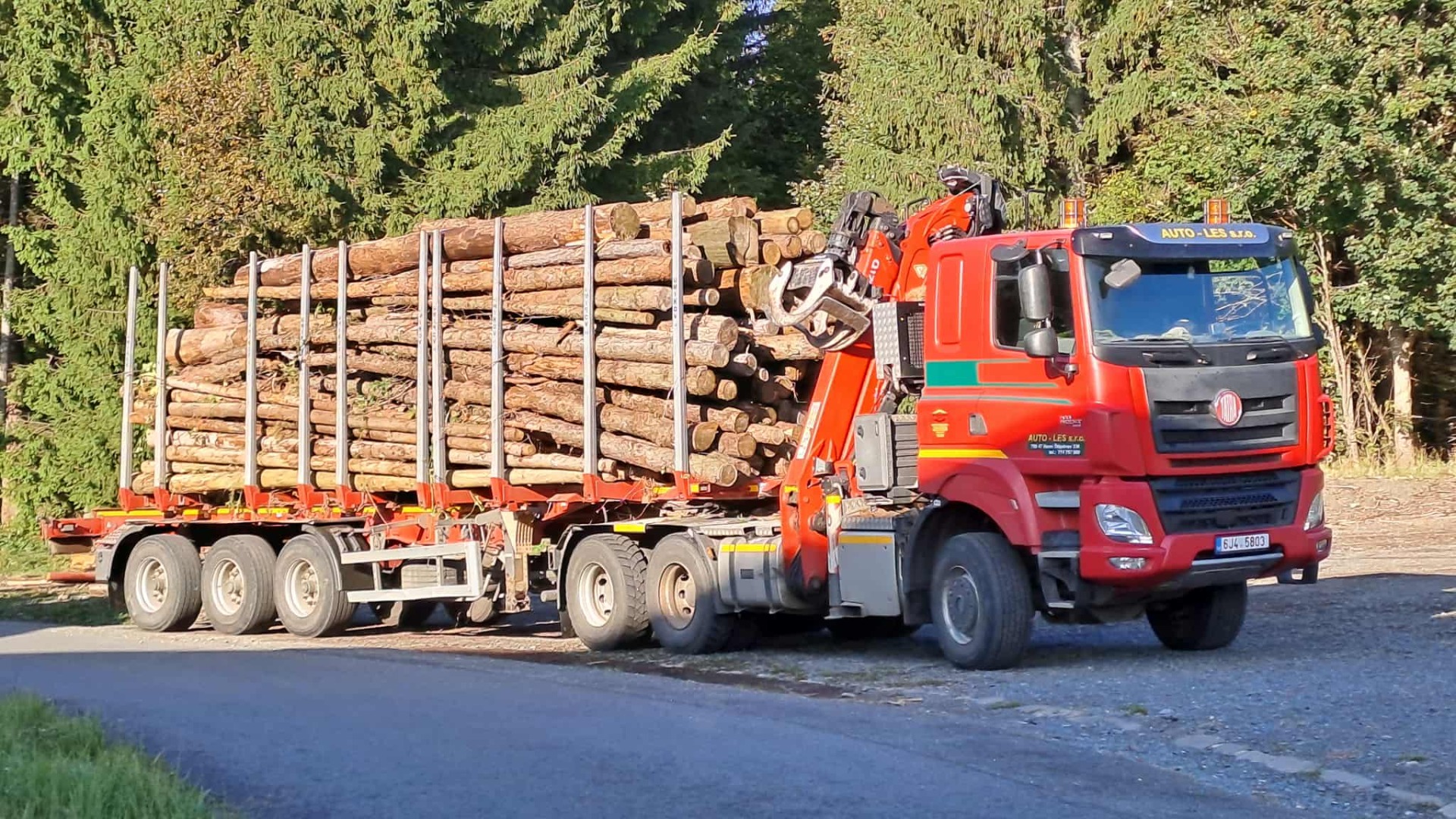 Dorazili jsme tedy chvíli po něm a jen čuměli - vezl kmeny dlouhé 4 - 5 metrů. Pavlův plán s přístřeškem je pasé ☹️. Takže kam s tím ???