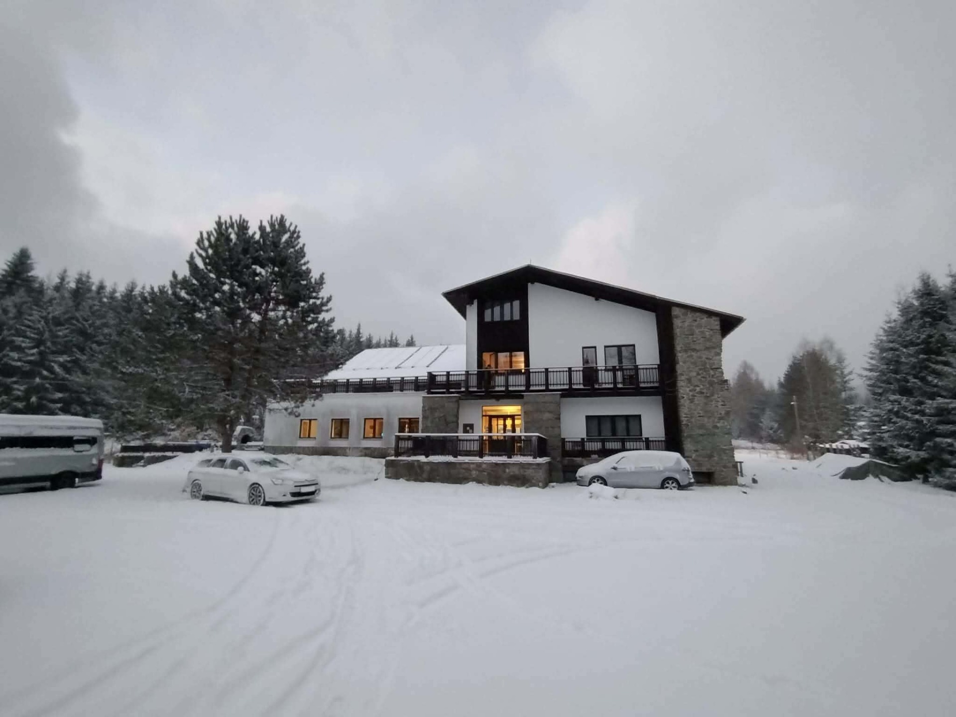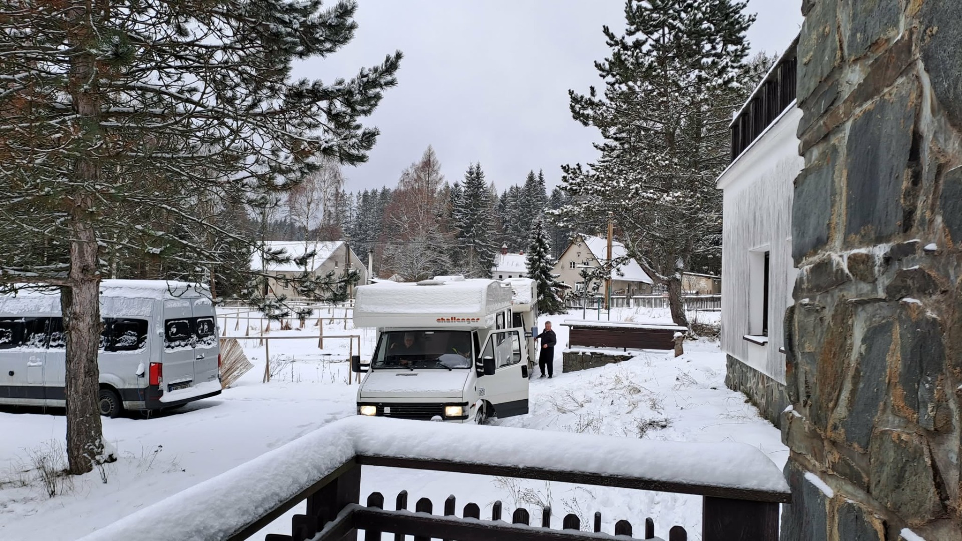 Pavel na to tentokrát naštěstí nebyl sám, střídal se s Tomášem. Jenže zásoby dřeva mizely rychlostí, jakou by záviděl i Kaufland, když je v akci máslo. A nikde žádná armáda skřítků, co by ty kmeny pod sněhem naštípala ☹️.